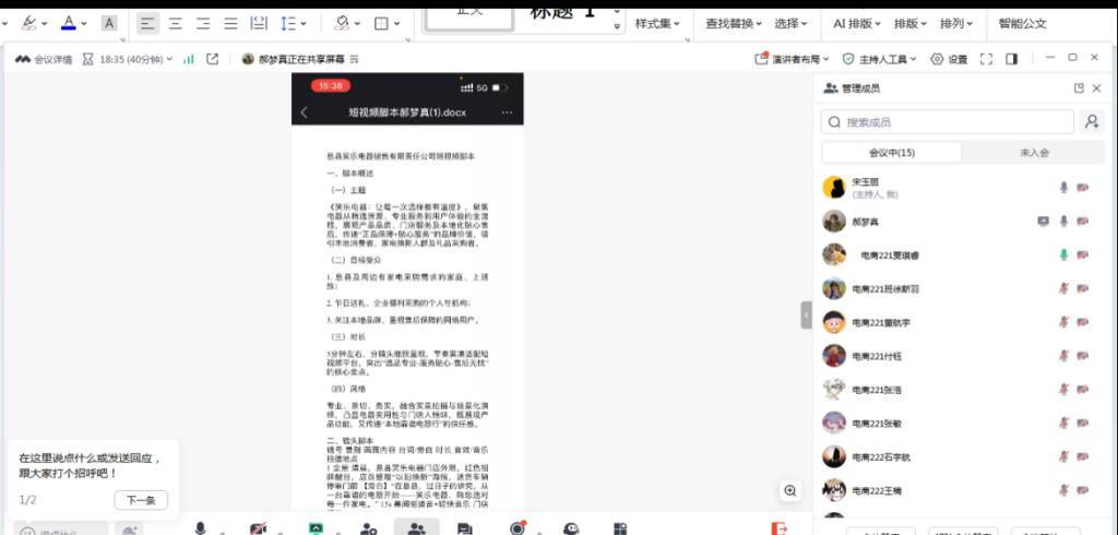 图2 电商221班郝梦真同学汇报短视频脚本截图