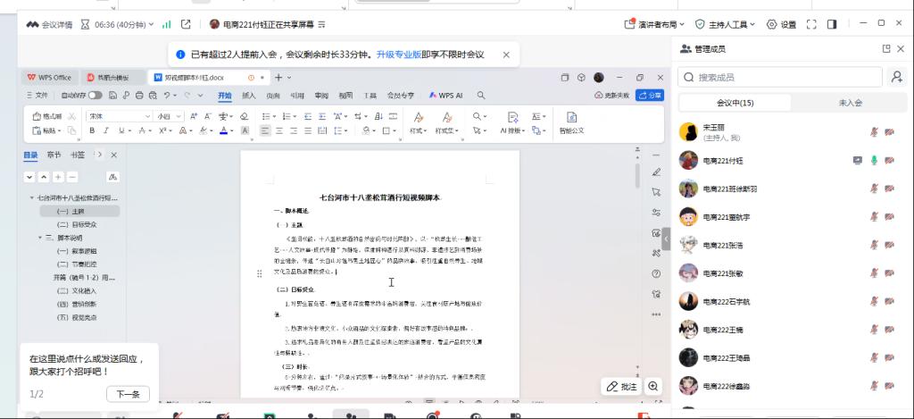 图1 电商221班付钰同学汇报短视频脚本截图
