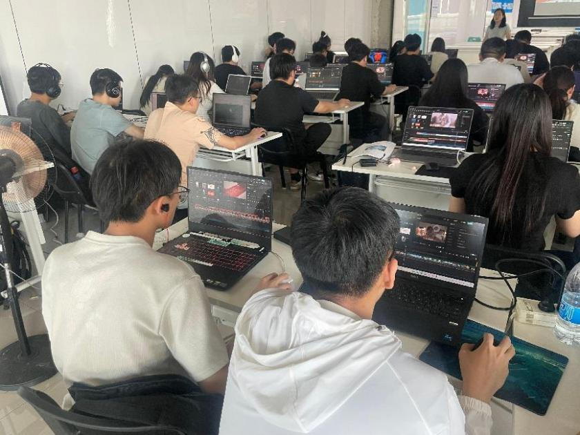 企业导师为同学们详细讲解了视频剪辑的基本流程、常用软件操作技巧及行业应用案例。同学们热情高涨,认真聆听,并在导师的指导下分组进行实操练习。大家积极讨论、互相协作,将课堂所学理论知识转化为实际作品,展现了良好的学习态度和专业素养。