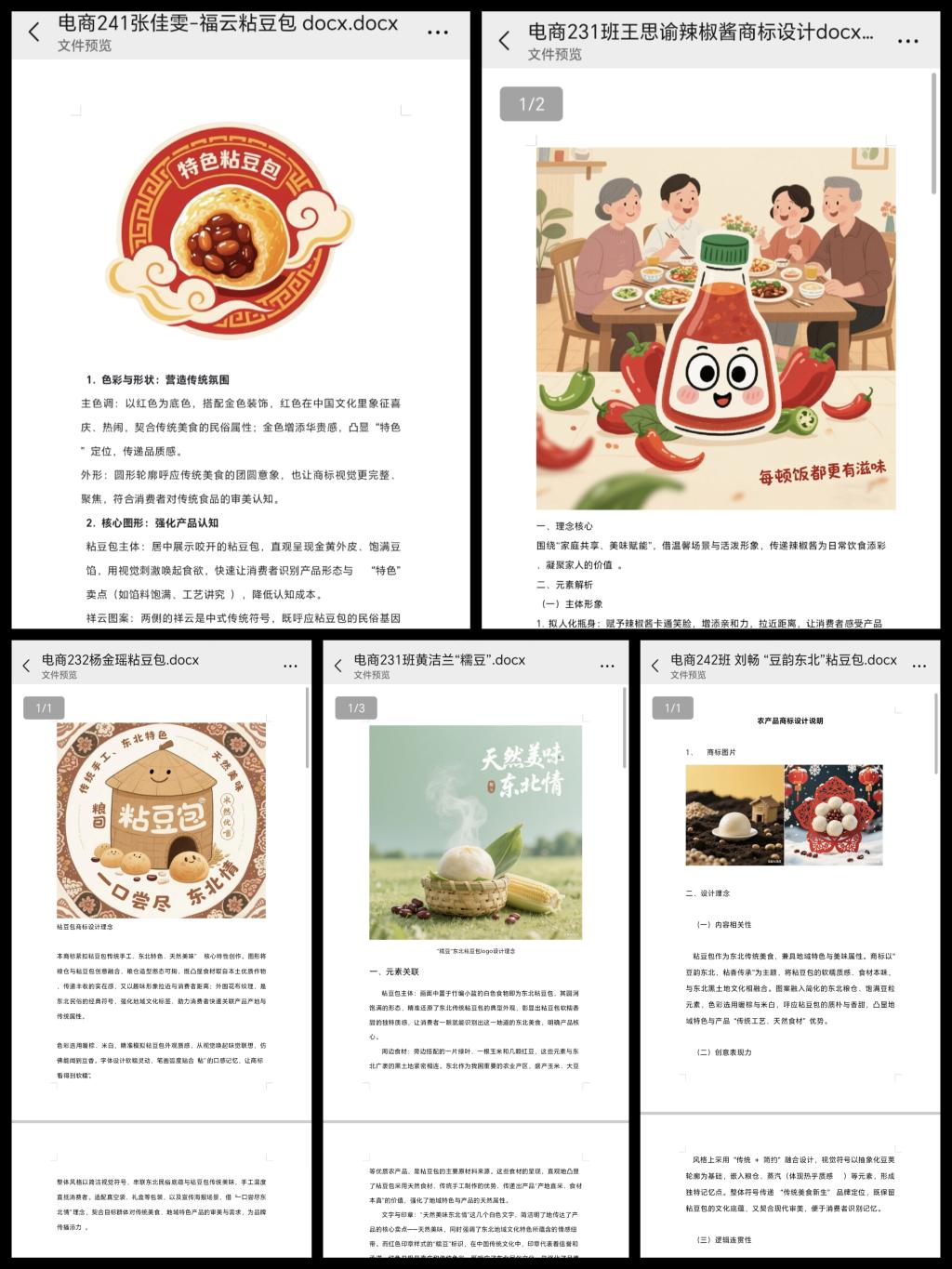 在第二周至第三周实习中,学生团队围绕齐齐哈尔市特色农产品项目,系统开展辣椒酱与粘豆包品牌视觉体系设计工作。团队通过市场调研、竞品分析及校园文化元素提炼,完成两款产品LOGO设计及品牌框架搭建。设计过程中,将学校“实基础、适需求、重应用、强素质”的人才培养目标融入视觉符号,以简约线条与地域文化元素结合,凸显产品“校园匠造、绿色健康”的核心价值。