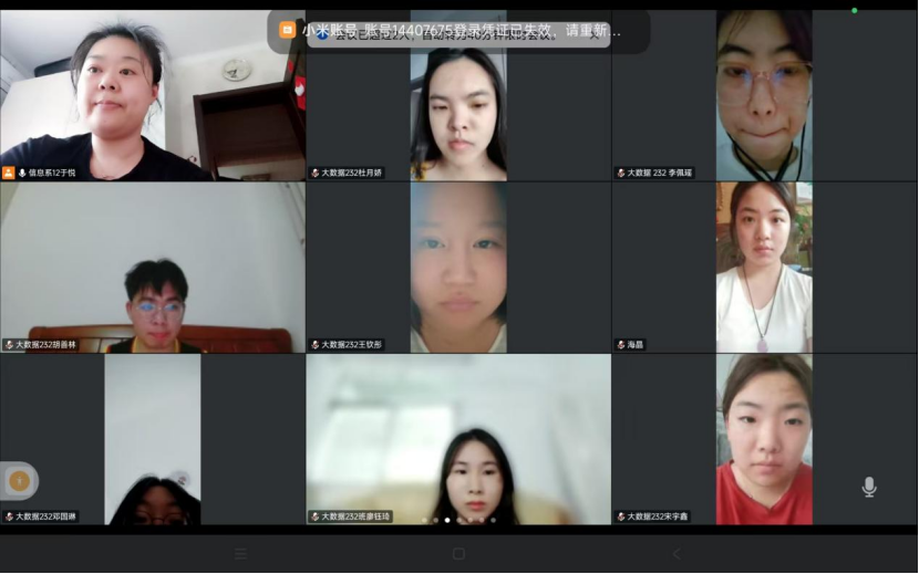 7月4日,大数据232班召开专业实践学期第三周线上总结会,指导教师于悦主持,全班51名同学参会。