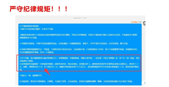 对此,高敏强调下周起将严格执行考勤检查,要求学生按时接听电话、回复消息,确保实习期间在岗状态。同时特别警示学生切勿抱有侥幸心理,往年已出现因实习问题导致无法毕业的真实案例,望全体学生引以为戒。