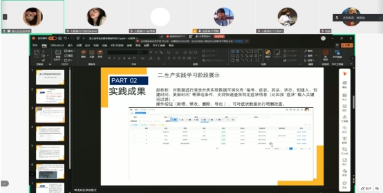 会议开始,高敏首先强调考勤纪律,将其作为保障实习质量的重要一项,明确详细的考勤管理制度,通过每日上下班打卡、请假流程及违规处理办法,让学生深刻树立起纪律意识。其次,针对本周学生的实习考勤,指出相关问题:个别同学在实习期间出现松懈情绪,存在偶尔迟到的现象;部分同学对请假流程的执行不够严谨。这些问题表现出同学们纪律意识不强,应加以改正。会议最后,通过汇报了解学生实习情况,根据小组成员实习阶段性成果演示,指出实习问题,进一步加强专业实践质量。