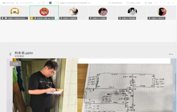 会议期间,同学们依次分享了各自的实践成果。凭借扎实的专业知识储备,大家的实习工作都在有序推进,刘永吉同学将精力集中在家装设计领域。他不仅高质量完成了企业交付绘图任务,还利用业余时间潜心钻研CAD软件。通过多样化的设计实践,刘永吉同学在设计领域不断突破自我。
