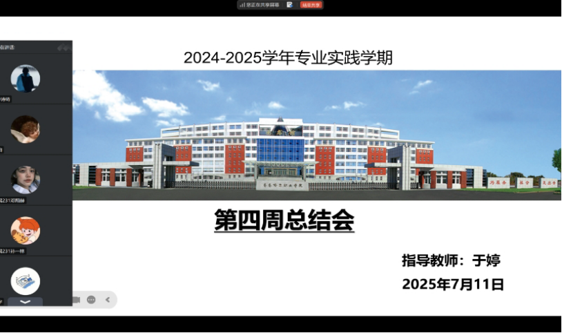 7月11日晚,数据科学与大数据技术专业2024-2025学年专业实践学期第四周总结会召开。于婷老师组织指导,聚焦学习成果深化、实习安全巩固等,推动学生交流实践收获、明晰成长方向。