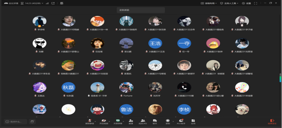 会议最后,于婷老师表达了对同学们的殷切期望。她鼓励大家在后续学习与实习中,持续保持积极进取的劲头,主动探索专业知识,提升实践操作能力,将理论与实际紧密结合,在不断克服困难与挑战中实现自我成长与突破,为未来职业发展奠定坚实基础。此次会议为同学们明确了方向,增强了信心,相信在老师的悉心指导与同学们的共同努力下,数据科学与大数据技术专业的专业实践学习工作将迈向新台阶。