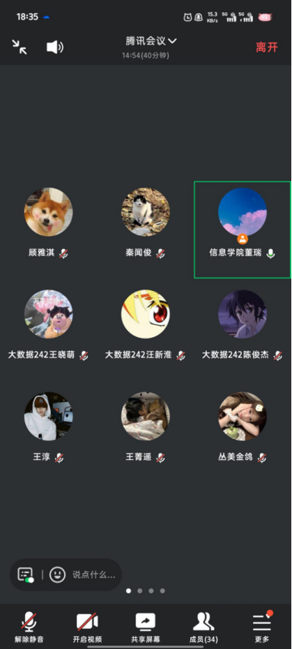 7月18日下午,大数据242班在腾讯会议上召开专业实践学期第五周总结会,本次总结会由董瑞老师主持,大数据242班共37人参加。
