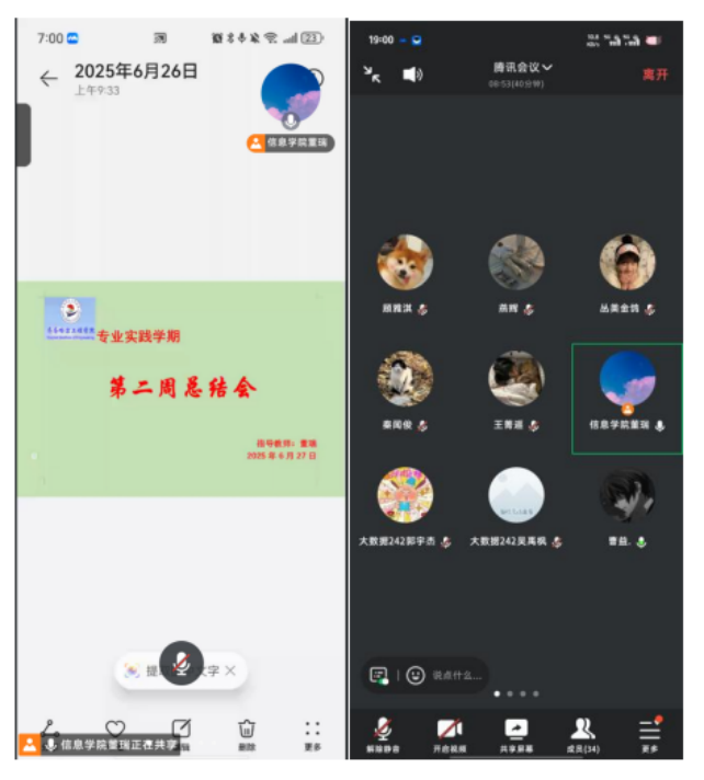 6月26日下午,大数据242班在腾讯会议上召开专业实践学期第二周总结会,本次总结会由董瑞老师主持,大数据242班共37人参加。