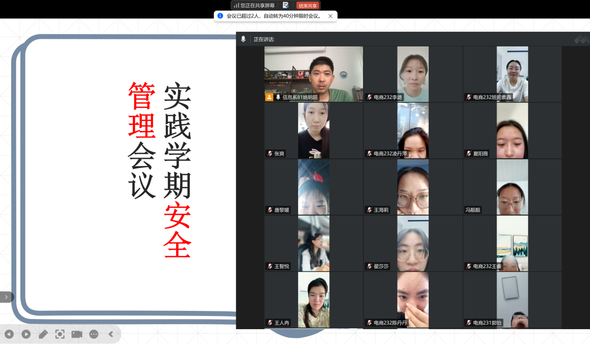 7月25日下午,齐齐哈尔工程学院信息学院电子商务专业实践学期指导教师姚明超通过腾讯会议开展实践学期安全教育活动。