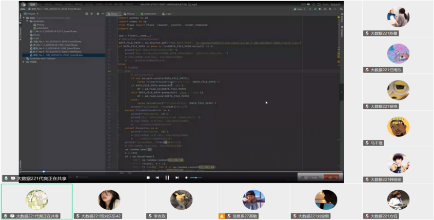 7月20日下午,大数据221班通过腾讯会议召开第五周专业实践总结会议。本次会议由高敏老师主持。