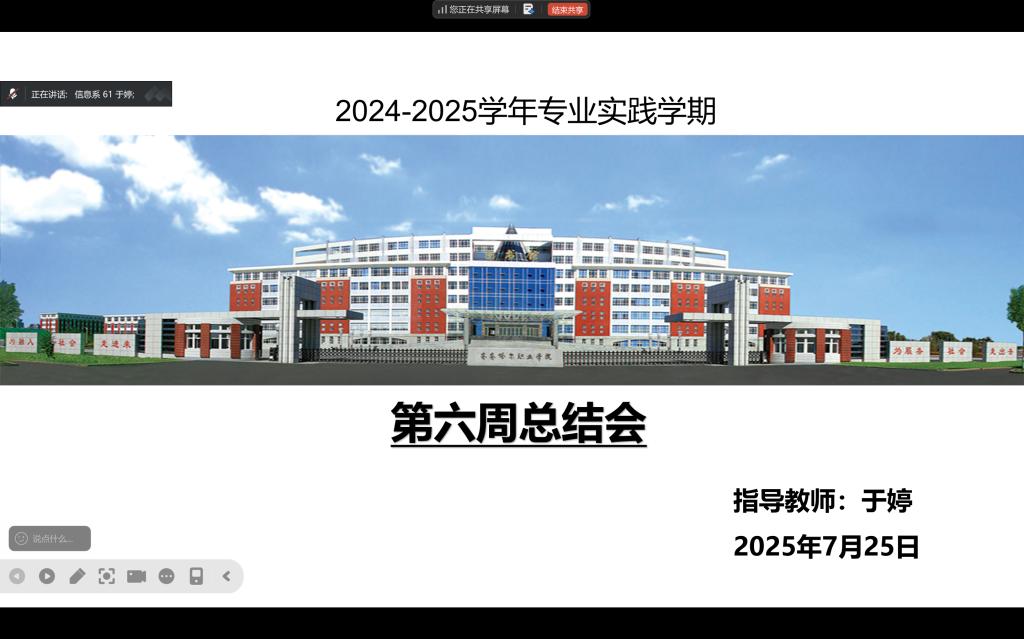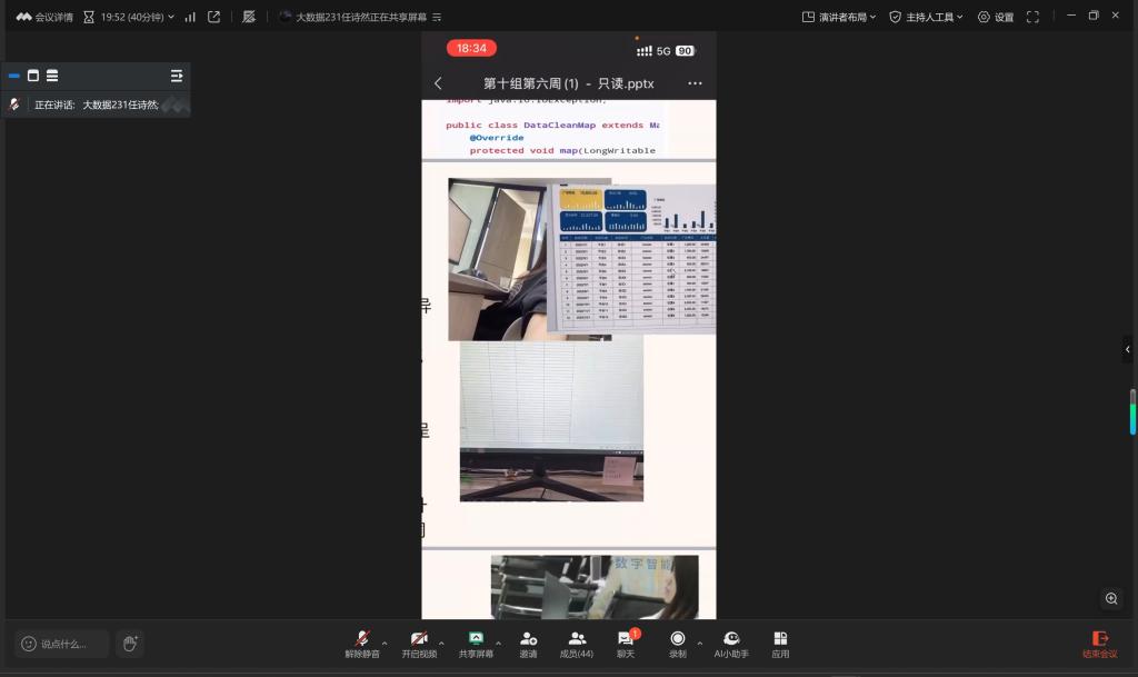 本次总结会既是实践成果的展示台,也是查漏补缺的加油站。通过安全教育筑牢收尾防线,通过小组分享促进互学互鉴,更通过明确材料提交要求倒逼大家高效收尾。期待同学们以严谨态度完成最后阶段的工作,将实践收获转化为专业成长的动力,在未来的学习与职业道路上持续深耕数据领域,再创佳绩。