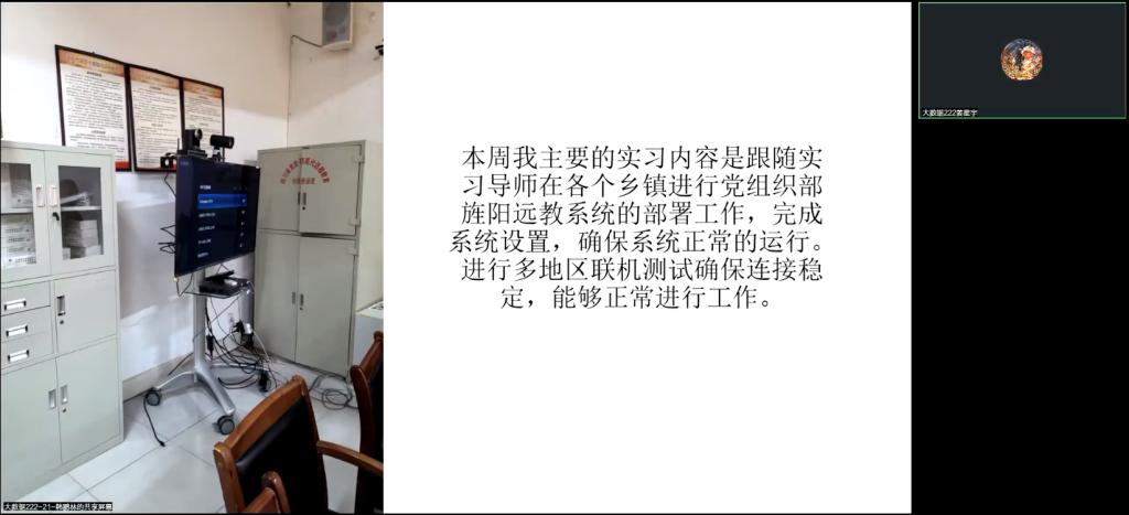 7月14日,为进一步巩固实习纪律成效,提升学生实践技能运用能力,总结阶段实习进展,大数据222班线上召开第四周总结会,由指导教师郑婧老师主持。