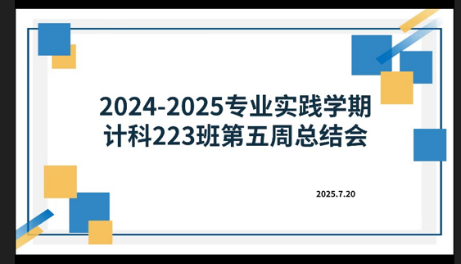 7月20日,计科223班借助腾讯会议平台,顺利召开了专业实践学期第五周总结会暨学年论文撰写指导会。此次会议旨在全面回顾第五周专业实践的开展情况,及时解决实践中出现的问题,同时为同学们的学年论文撰写提供专业、细致的指导,助力大家更好地完成后续的学习任务。会议由指导教师杨学仁老师主持,计科223班全体同学参与。