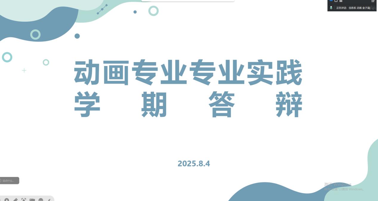 8月4日下午,艺术与体育学院动画22级于线上开展专业实践学期学生成果答辩,经过为期六周的企业实习以及项目实践,动画专业学生带着各自的实习成果通过演示、答辩互动的形式,集中展示实践收获。本次会议由艺术与体育学院动画专业佟鑫老师及金子涵老师主持。