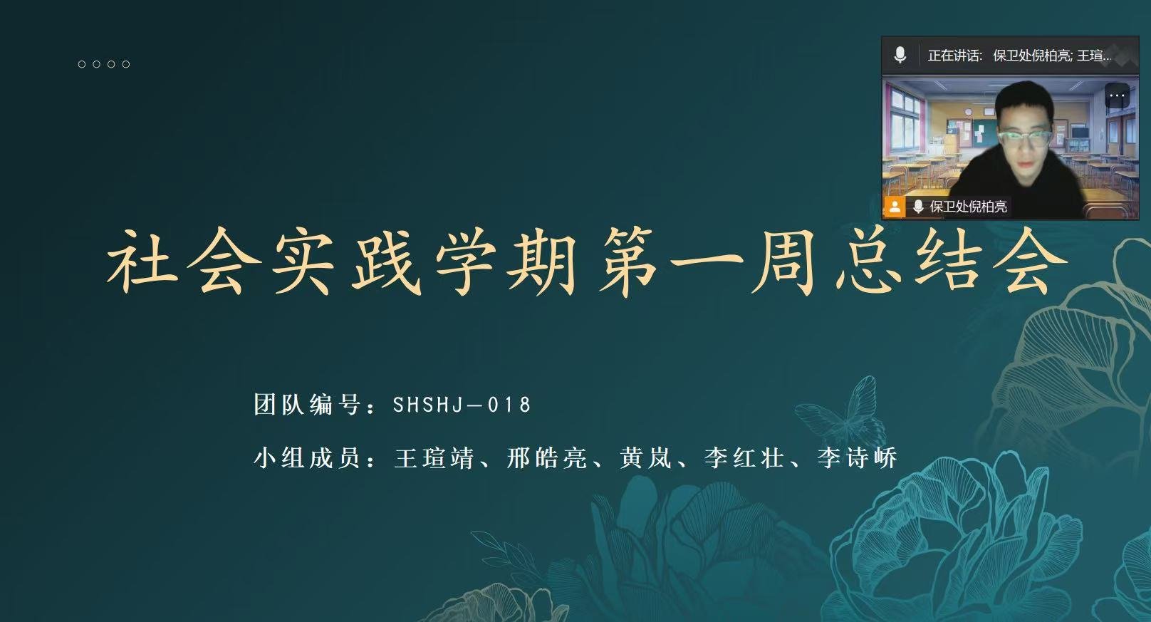 首先,会议进入实践活动汇报环节。各小组依次汇报了本次社会实践学期的整体设想,重点分享了过去一周的实习进展,就实践初期的实施情况、遇到的问题与参会同学展开交流探讨。