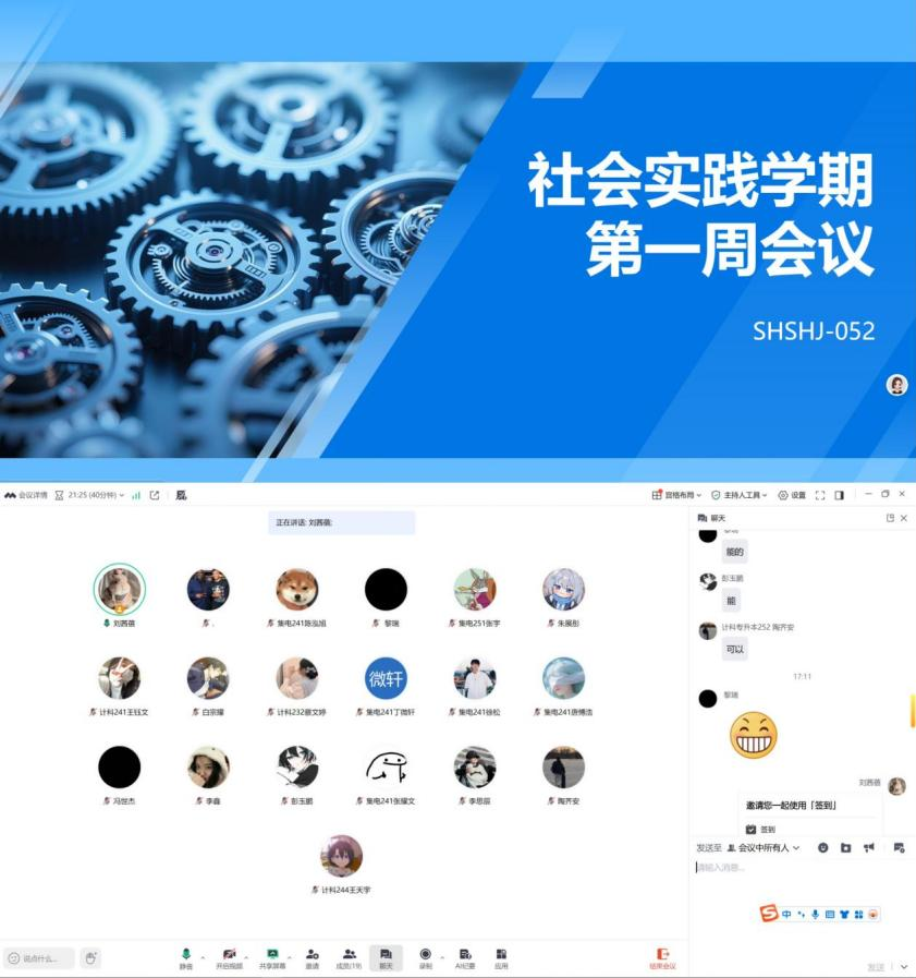01 月 09 日下午,指导教师刘茜蓓在腾讯会议平台召开社会实践第一周专题会议,来自集成电路、计算机科学与技术专业的 19 名学生参加,会议由刘茜蓓主持。