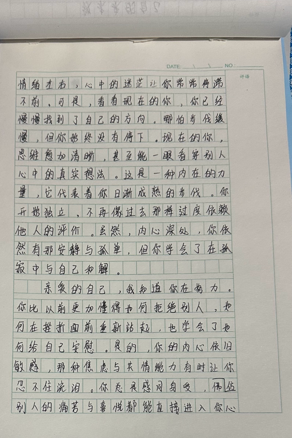 最后,王博同学及小组成员顺利完成书信撰写,信中以 “现在” 与 “未来” 双重视角展开叙述,记录了当下的成长状态与对未来的期许。