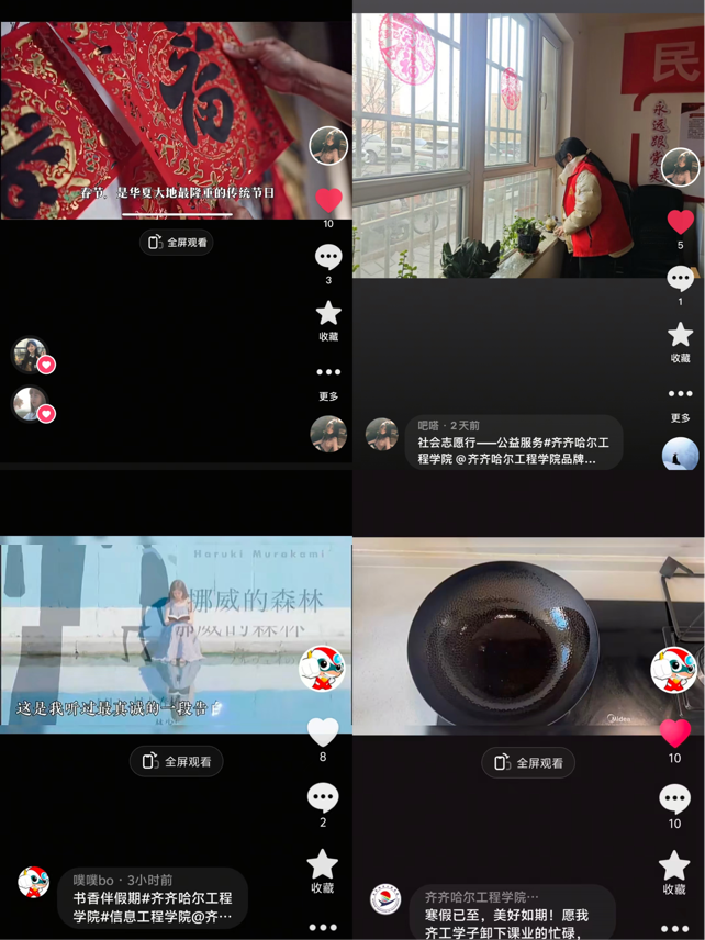 首先,全员明确视频拍摄要求,本次拍摄聚焦寒假生活实景,分必选与任选两类主题。必选项目为“烟火里的劳动课·我的美食日记”与“社会志愿行”,前者记录厨房劳动烟火气,后者围绕企业调研、公益服务定格青春担当;任选项目3选1,可从舞蹈、好书速推、元气运动、家乡年味等主题中任选适配方向创作。随后,成员依次汇报本周拍摄进度,均已着手构思创作。部分成员已完成素材拍摄与初步剪辑,部分成员确定了思路脚本,他们将以多元视角呈现劳动之美、志愿之光、才艺之彩与年味之浓,用影像书写青年寒假答卷。最后,众人围绕取景、剪辑等难点交流解决思路,王钰文答疑并提优化建议,强调发布需加话题#齐齐哈尔工程学院、@齐齐哈尔工程学院品牌创意中心,同时明确后续节点,要求全员保质保量按时完成作品,推进社会实践任务落地。