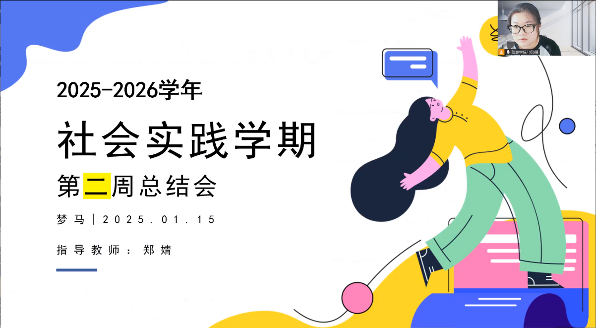 1月15日下午,指导教师郑婧在腾讯会议召开社会实践第二周专题会议,共13名学生参加,会议由郑老师主持。