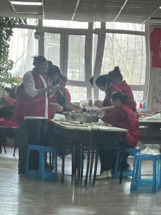 其次,邢祺贺、王筠仪、高梦含三位同学前往社区服务中心开展志愿服务,与社区工作人员一同为老年居民包制暖心饺子,还耐心一对一教老人使用智能手机,帮助老人跨越 “数字鸿沟”。
