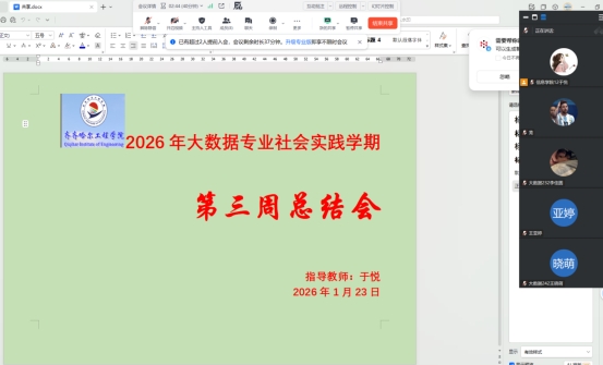 1月23日,信息学院于悦指导教师组织召开社会实践学期第三周指导推进会,18名学生参会,会议围绕前期实践活动开展情况进行全面复盘总结,统筹部署后续相关工作。