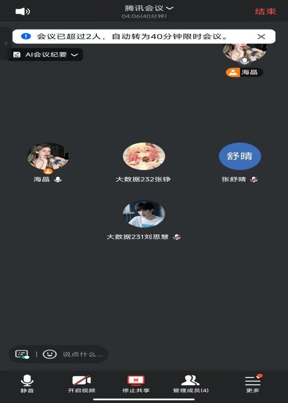 最后,小组就第四周工作推进节奏达成共识,明确了各任务的初步完成时限,鼓励成员主动沟通、互帮互助,针对后续可能出现的问题提前预判、做好应对准备。