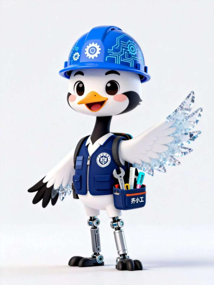 电商242班祁飞燕设计出以“丹顶鹤”为原型的“工学学子”形象,融合“知识、实践、地域特色”三大核心要素,传递青春活力与校园文化温度。该吉祥物传递“积极进取、探索未知”的精神内核,也暗合“理论与实践并重”的教育目标。