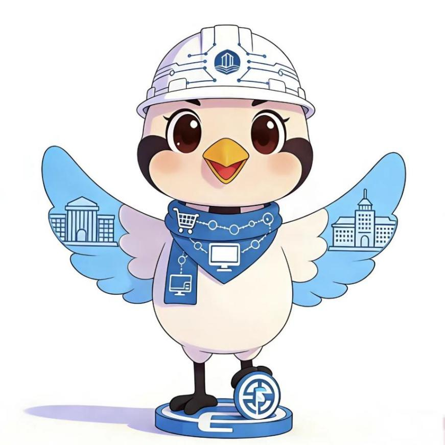 电商251班李嘉怡设计以“丹顶鹤”为原型的“学校建设与数字服务”主题吉祥物,融合“工程建设、高质量发展、数字经济”三大核心属性。通过科技元素传递“智慧建造、数字赋能”的现代化发展理念。张开翅膀的站姿与上扬的嘴角,传递“热情服务、积极进取”的精神内核;稳定的站姿与坚实的底座,也暗合“建设坚实可靠”的品质承诺。