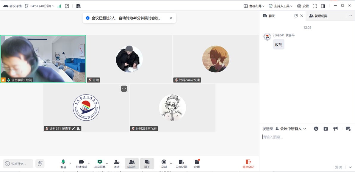 1月17日中午,指导教师耿闯通过腾讯会议平台召开社会实践学期第二周总结指导会议。会议由耿闯老师主持,7名学生全部准时参会,核心围绕本周实践情况复盘、问题梳理及后续工作部署展开,旨在规范实践流程、提升实践质效,为后续工作扎实推进筑牢基础。