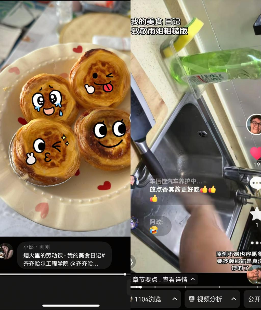 随后,各组员依次汇报本周“青春FUN肆拍”主题实践任务完成情况,详细分享实践过程与收获。1月21日,组员陶安齐聚焦“烟火里的劳动课·我的美食日记”开展厨艺实践活动,从精心挑选新鲜食材、细致清洗切配,到热火朝天地翻炒,全程亲力亲为。当一道道热气腾腾的菜肴端上餐桌,他在品尝劳动成果的同时,不仅体会到烹饪的乐趣,更深刻懂得了一餐一饭的来之不易,领悟到珍惜劳动成果的重要意义,让劳动教育的理念融入实践细节。1月20日,组员张雨鑫同样围绕该主题开展蛋挞制作实践,从精准称量细砂糖、调配牛奶比例,到把控蛋液过筛细腻度、控制蛋挞液倒入量,每一步都耐心细致打磨。在等待蛋挞在烤箱中慢慢鼓起、烤出焦香金黄的过程中,她学会了静待结果、循序渐进,最终收获了酥皮层层酥脆、内馅嫩滑香甜的美味蛋挞。此次实践不仅让她掌握了基础烘焙技能,更收获了动手实践的成就感,促使她主动投身劳动,学会以认真严谨的态度对待生活中的每一件小事。