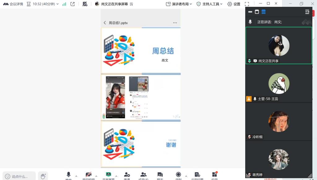 此次会议旨在助力成员高效推进实践任务、精准掌握各环节进展,并强化安全保障意识。首先,王蕊老师聚焦社会实践学期核心任务——寻新“荐”面礼,进行了系统性、精细化的要求解读,将任务拆解为具体执行模块,逐一明确各项操作要点与完成标准,为成员搭建清晰的行动框架。其次,王蕊老师对小组成员进行了简单的安全教育,让成员们注意各方面的安全,并叮嘱做好任务的留痕。随后,王蕊老师抽签选择了一个同学汇报,分享一下本周的任务进展,被选中的是尚文同学,同时会议明确了后续小组汇报的具体顺序,尚文同学本周主要任务进展是进行了一次志愿服务并录制下来按要求上传作品。王蕊老师针对视频制作的呈现效果、内容优化及点赞量提升等关键问题,与尚文同学展开深入交流,提出针对性指导建议。随着尚文同学汇报的结束,王蕊老师嘱咐遇到问题及时沟通,社会实践学期第四周指导会议圆满落下帷幕。