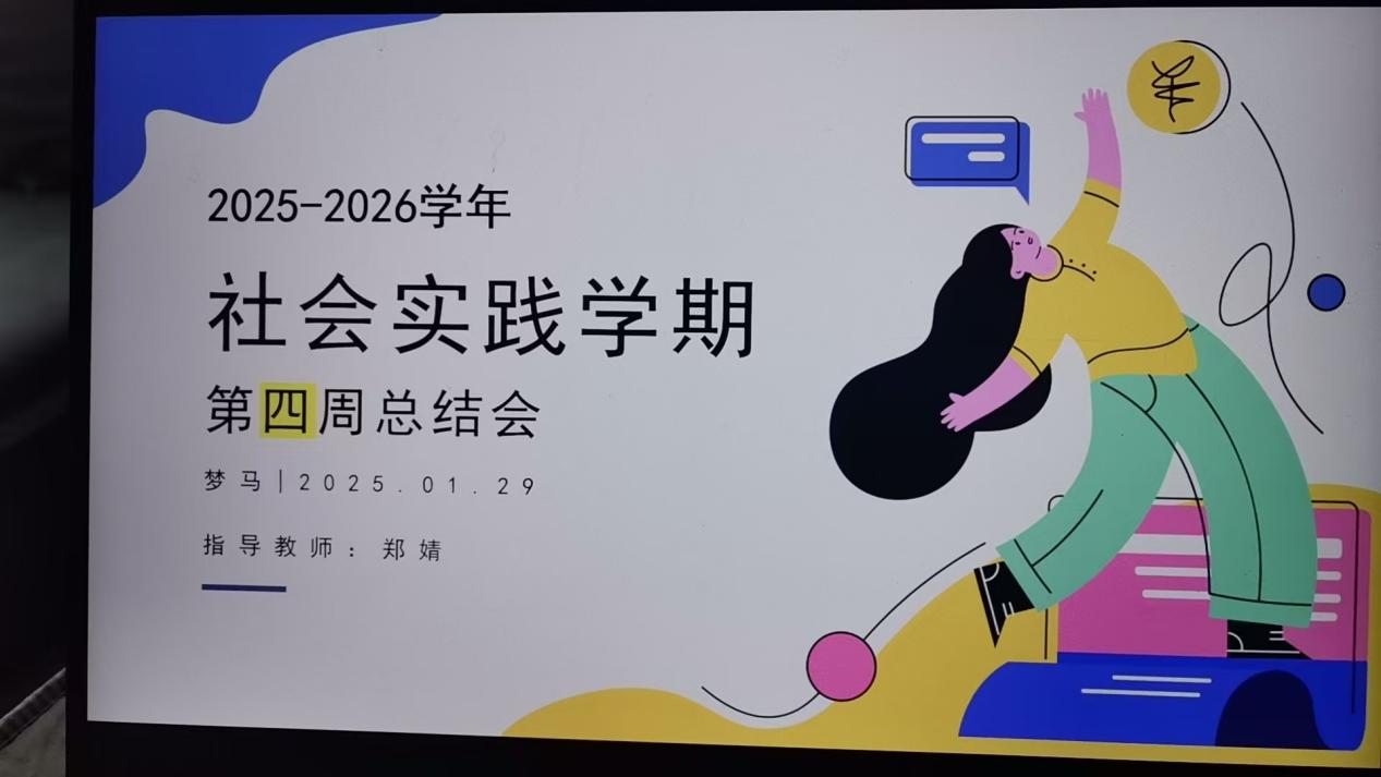 2026年1月29日,生涯导师郑婧通过腾讯会议线上平台,组织开展社会实践学期第四周总结会议。会议由张欣然同学主持,11名各实践小组学生代表参会,总结本周实践成效、交流问题难点、明确后续方向。