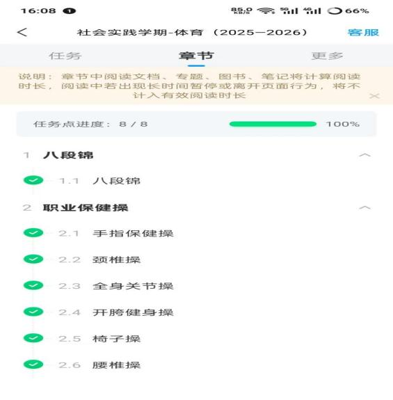 1月26日,翟家荣小组进行了2025-2026学年社会实践课程学习,通过线上课的形式掌握了八段锦与健身操。