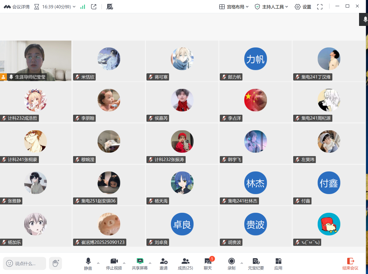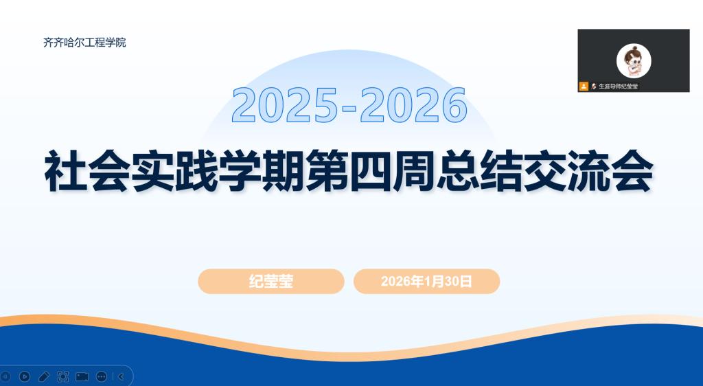 1月30日,指导教师纪莹莹通过腾讯会议平台,主持召开了社会实践学期第四周线上总结交流会,所指导学生全员参加。