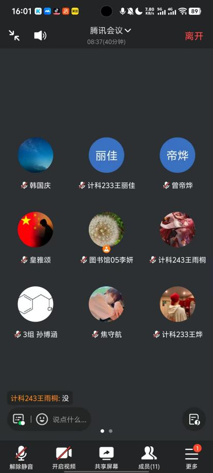 各小组组长汇报了本周组内成员社会实践项目完成情况,在第一周中,大部分同学进行了德育项目的视频学习。