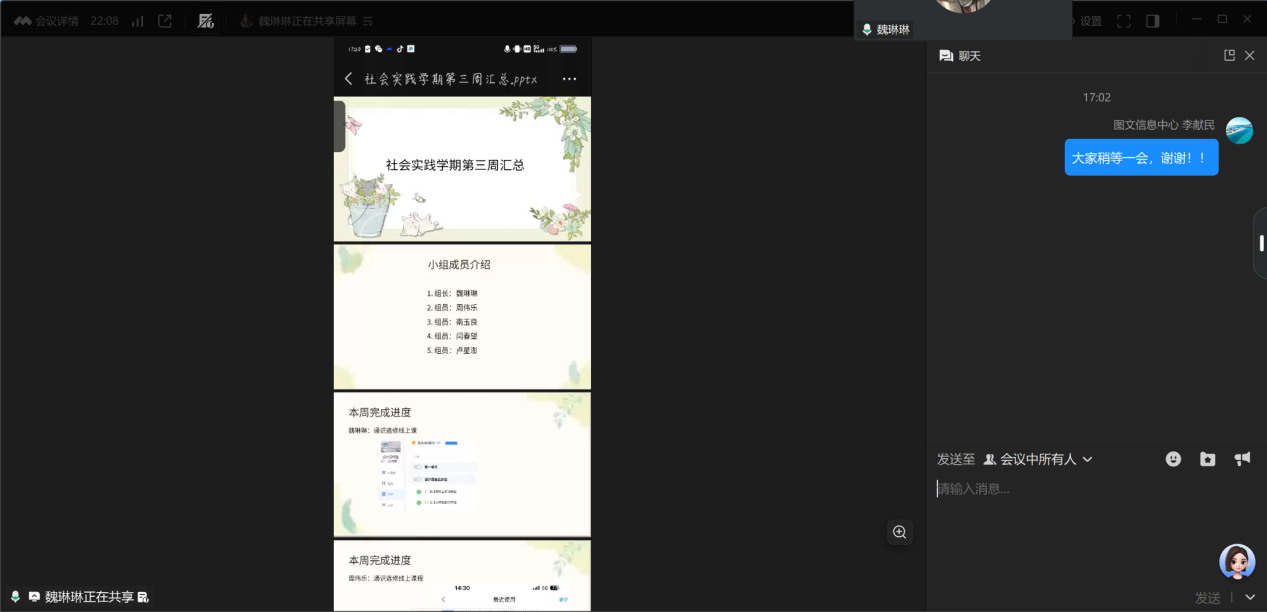 1月24日下午,SHSHJ-045小组在腾讯会议开展线上小组第三周汇报总结,小组五位成员全部参与会议。
