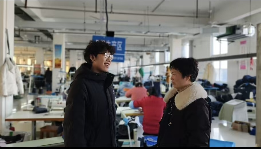 电商251班刘艺飞在鑫蔓服饰的生产车间,与电商运营主管进行了一对一访谈。他了解到企业在服装直播带货中的选品和流量转化难题,明确了要提升短视频内容创作能力。