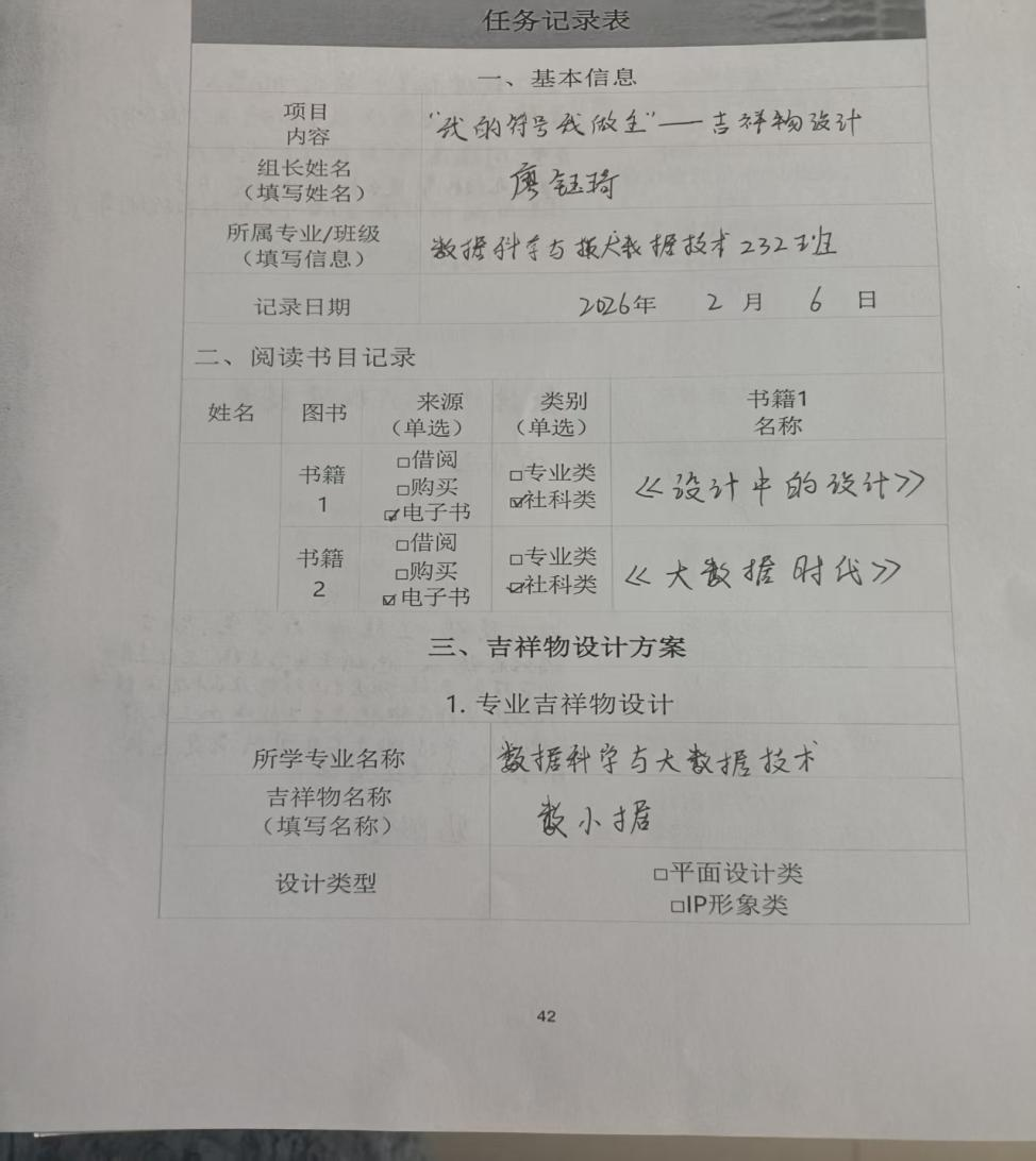 随后,会议进入进度汇报环节,各成员依次汇报本周实践任务完成情况,成效扎实、重点突出。吴禹枫、陈清峰两位同学聚焦调研核心任务,详细汇报了前期一手资料与数据的梳理过程,说明已严谨完成调研报告撰写,确保报告内容详实、逻辑清晰,为后续成果总结奠定了坚实基础;组长廖钰琦汇报“我的符号我做主”特色项目推进情况,分享了自己结合齐齐哈尔工程学院信息学院数据科学与大数据技术专业的学科特色与培养定位,精心设计专业专属吉祥物,赋予其贴合专业内涵的视觉符号与文化寓意的全过程;文志伟同学汇报程序设计实践成果,说明自己深耕程序设计,已顺利完成3个专业实践项目的程序开发与调试,成功将课堂所学编程知识转化为实际应用能力,展现了扎实的专业基本功。