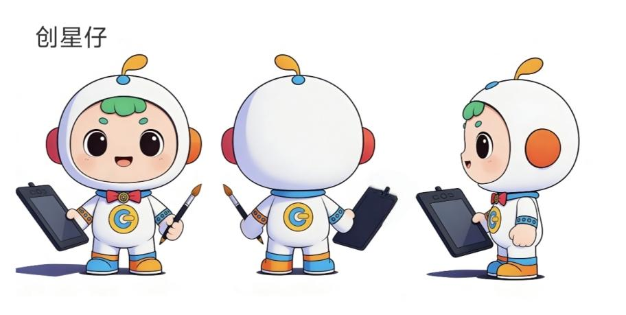动画241肖迪的“创星仔”以宇航服为基底造型,象征探索未知的专业精神;手持数位板与画笔,紧扣动画专业属性;色彩明快活泼,彰显专业学子的创意活力与青春朝气。