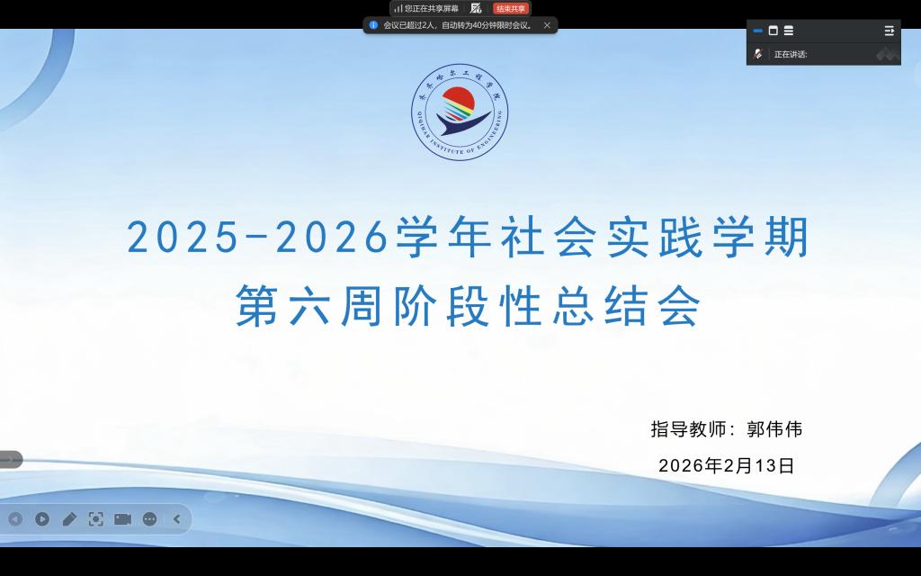 2026年2月13日晚,指导教师郭伟伟召开社会实践学期第六周指导会议,会议通过腾讯会议线上召开,五组学生全体参加会议。