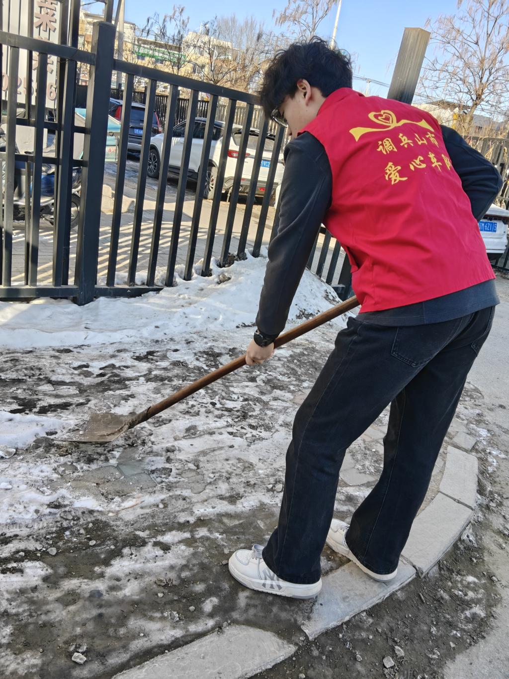 结合前期除雪清楼志愿服务积累的经验,罗云志响应社区后续除雪保障号召,持续投身除雪志愿服务。近期气温波动较大,部分路段出现积雪、薄冰,给居民出行带来不便,他主动放弃休息时间,携带除雪工具前往社区主干道、单元门口、老年活动区域等重点路段,与社区工作人员、其他志愿者并肩协作,挥舞铁锹、挥动扫帚,有序开展积雪清扫、薄冰铲除工作。清扫过程中,他重点关注独居老人、残疾人等特殊群体出行路段,优先清理其家门口及必经之路的积雪,同时提醒过往居民注意防滑,用细致举动守护社区居民出行安全,续写除雪志愿服务的责任与担当。