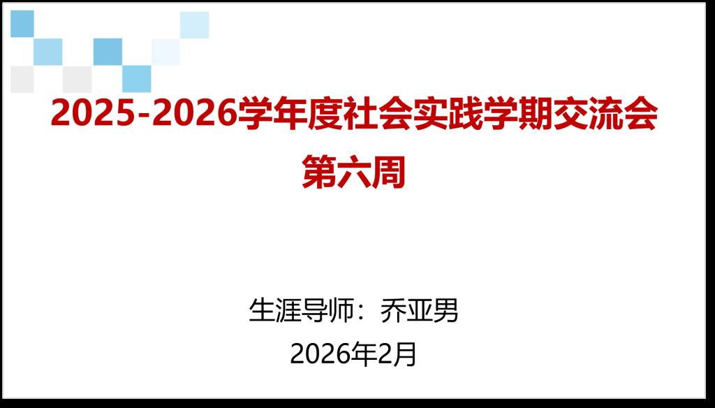 2月15日晚,生涯导师乔亚男借助腾讯会议平台,主持召开社会实践学期第六周总结交流会。会议重点围绕第六周社会实践开展情况进行集中复盘研讨,梳理过往实践亮点与不足,推动社会实践工作扎实收尾。