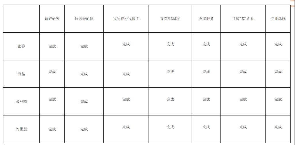 本周作为社会实践学期的最后一周,大家对作业进行整理。信息学院张铮小组召开社会实践学期总结会,由组长张铮主持,张铮、海晶、刘思慧、张舒情 4 人参加,对本学期实践成果进行全面梳理与总结。