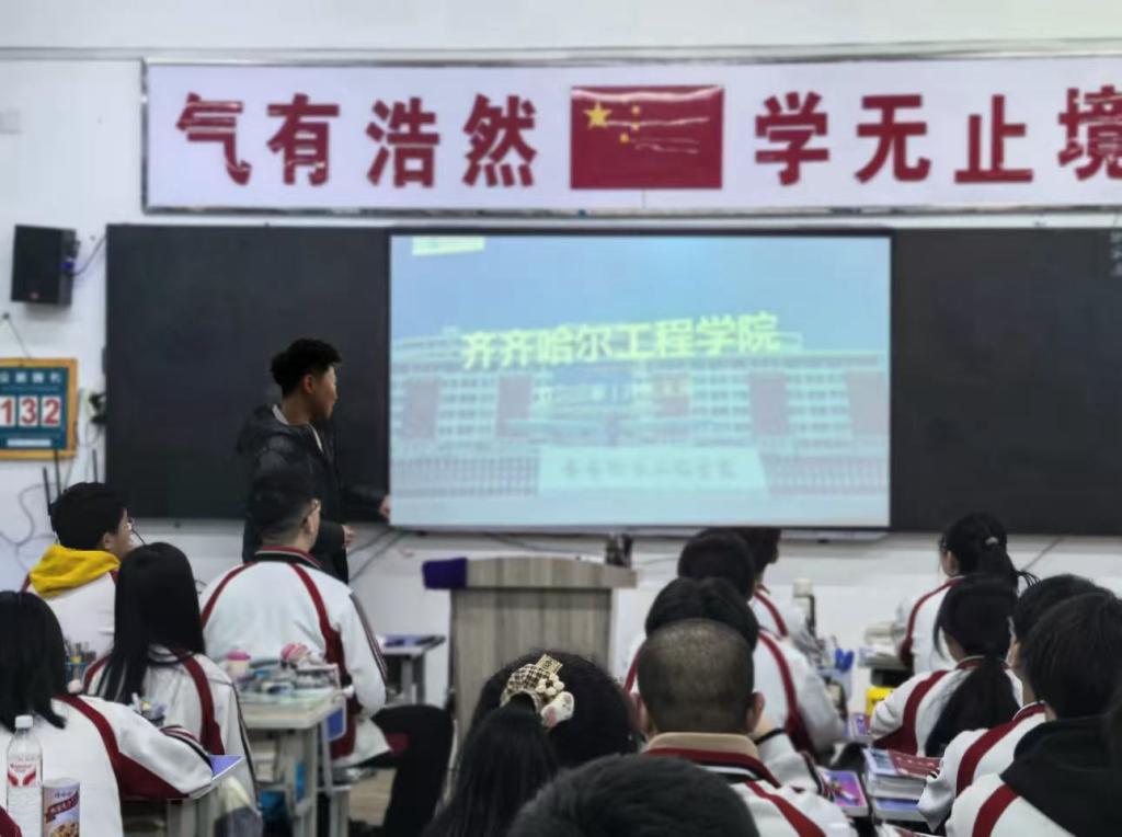 活动最后,四人分别在各自母校为学弟学妹送上祝福,期待在齐齐哈尔工程学院与大家相遇。此次活动既为学弟学妹们提供了升学参考,也让四位同学在回访母校的分享中提升了能力,感受到了薪火相传的责任与价值,实现了个人成长与经验传承的双向奔赴。