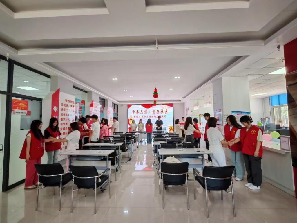 首先,王璐璐介绍本次志愿服务活动意义与要求,要求社区志愿者注意着装,认真工作,积极完成安排的各项任务,随后,由南航街道华光社区党委副书记李睦介绍社区具体工作,告诉志愿者们各个社区的工作人员所工作的工作区域并由齐齐哈尔工程学院学生代表吴雪岩发言,最后,社区工作人员以“一对一”的形式为大学生志愿者佩戴志愿者工牌、发放志愿者马甲,华光社区团支部书记带领大家宣读志愿者誓言。