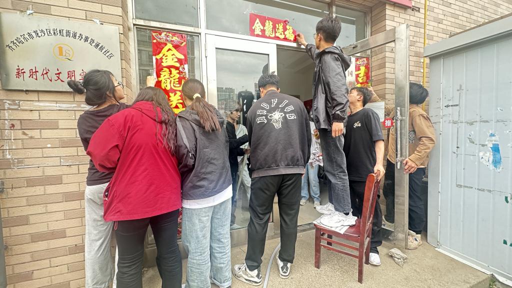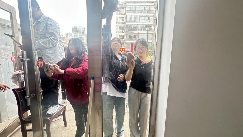 首先,社区工作人员为同学们分配好了擦玻璃任务。随后,同学们拿抹布和报纸等工具将展窗的立柱、展框、玻璃擦得干干净净。最后,用锵刀和洗洁精使展窗和玻璃擦的一干二净,为社区提供了更加优质的环境。