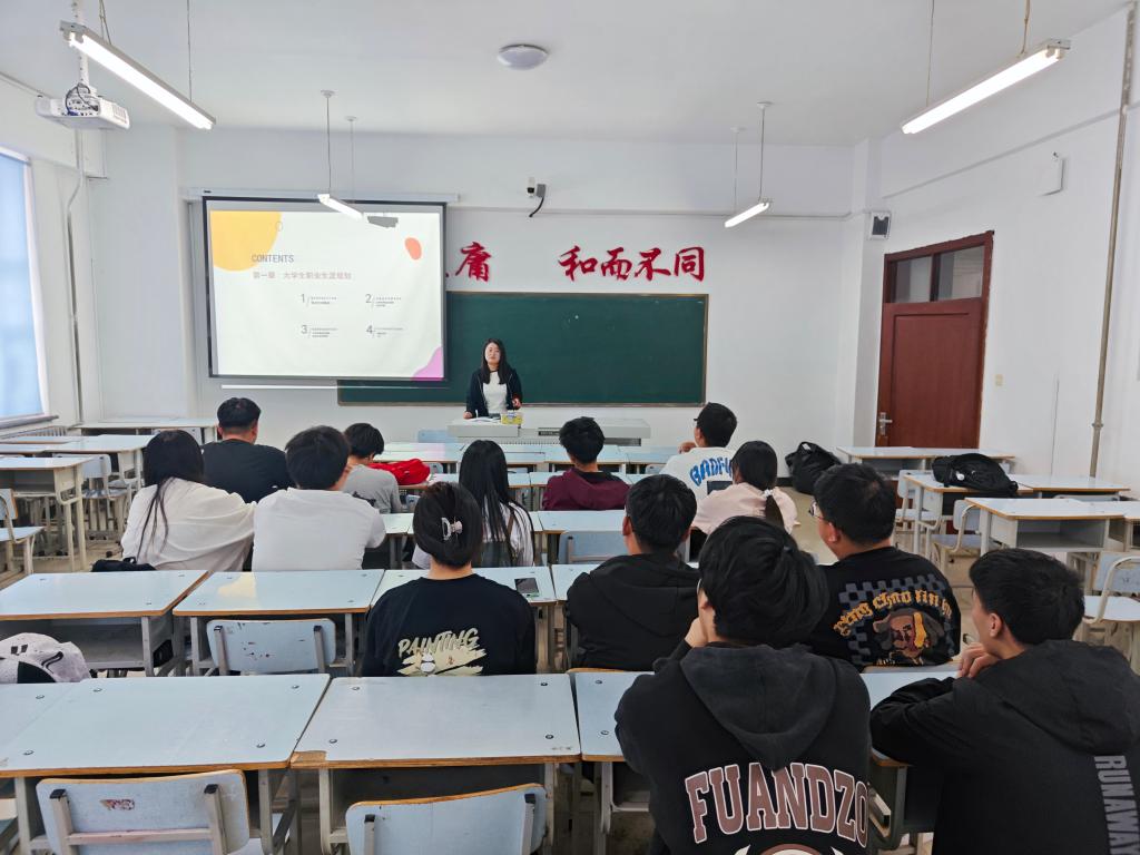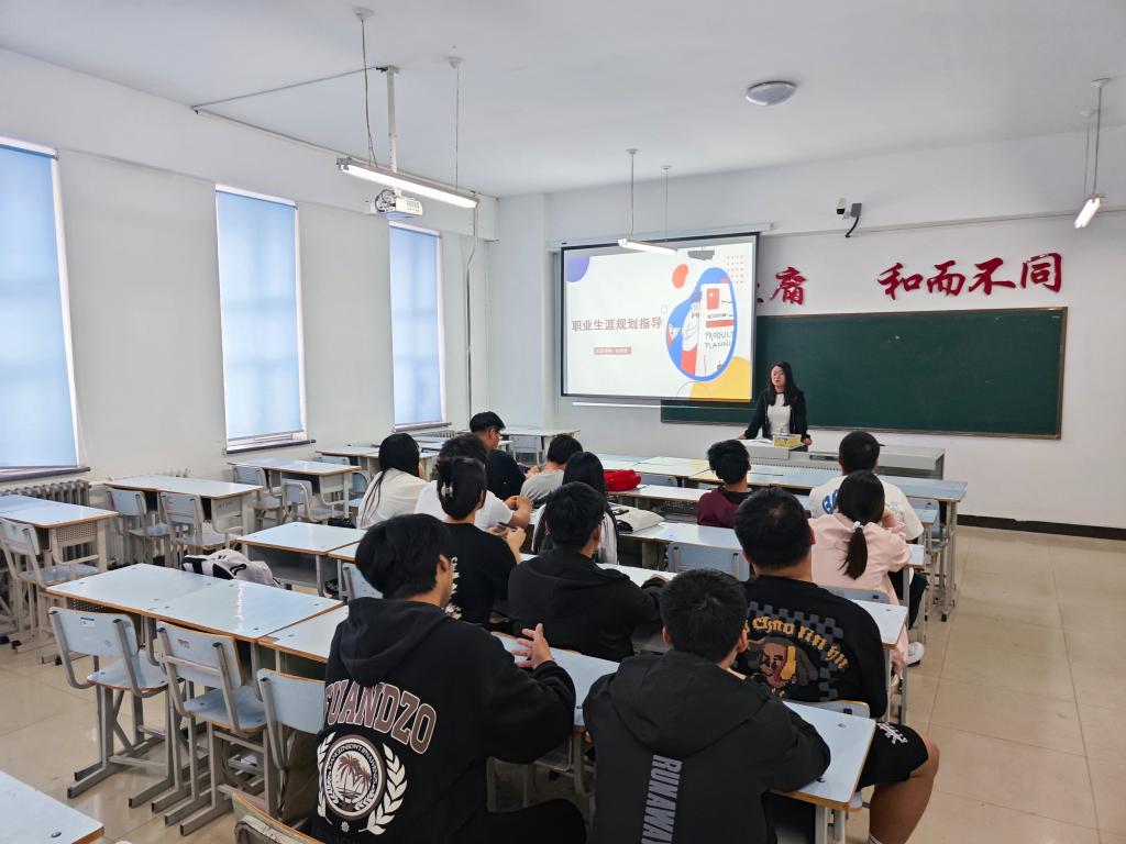会上,纪莹莹老师首先强调了职业生涯规划的重要性,指出一个明确的职业目标能够帮助学生更好地规划学习路径,提升个人竞争力,并鼓励学生们尽早思考自己的兴趣和优势,结合市场需求和未来发展趋势,制定出适合自己的职业规划。接着,纪莹莹老师通过生动的案例分析,引导学生们进行自我评估,识别自己的优势和不足,帮助学生们了解专业行业的就业前景和发展空间。
