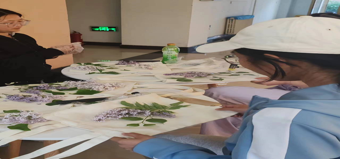 本次活动主要通过植物拓染的方式,将春天的美丽“烙印”在袋子上,植物拓染属于植物染色的特殊技艺,通过物理敲击使植物的汁液渗入织物中,留下属于大自然最原始的色泽、形状和脉络纹理,一株草一束花一个布袋,敲拓到一起,承载着自然界的无限美妙,是一种让同学们发现大自然之美、与自然亲密接触的独特方式。