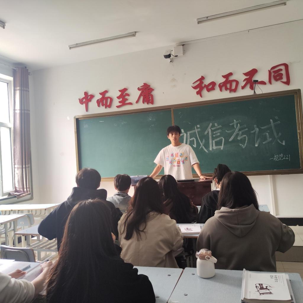 首先,杨子龙同学表示,5月份的到来也预示着各科测试和期末考试的到来同学们应以积极的心态去面对一次次考试,秉承着认真负责的态度去迎接每一次考试。随后,杨子龙同学讲述了关于考试诚信的要求,包括考前准备、考试过程纪律、违反考试行为等要求,并向同学们特别强调了违纪处分的处理办法和惩罚措施。最后,杨子龙强调,临近期末,同学们要好好复习,认真准备考试,在考试中展现出自己的真实水平,用诚信赢得他人的尊重和信任。
