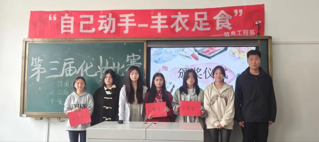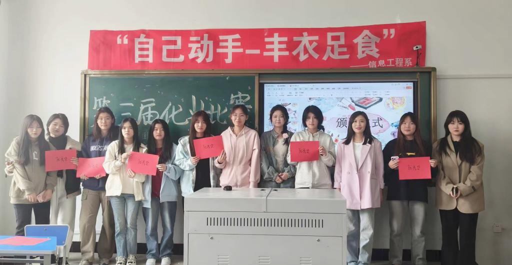 5月11日中午,根据劳动月活动计划安排,信息工程系在一号教学楼1405教室举办了一场主题为“自己动手,丰衣足食”为主题的化妆比赛活动。此次活动由集电231班黎瑞担任主持人,信息工程系辅导员张莹老师亲临现场参与指导。此外,还有44余名学生积极参与了此次活动。